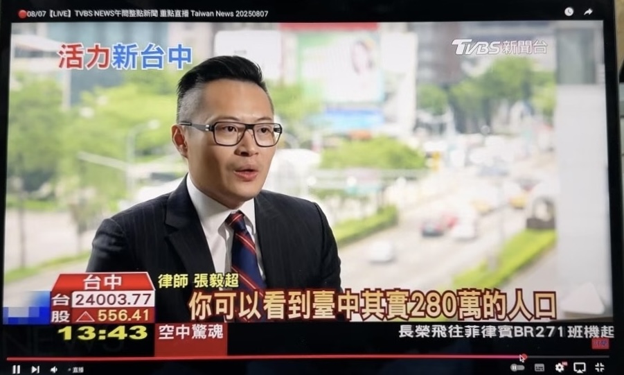 本所張毅超主持合夥律師近日很榮幸受 TVBS 邀請,分享築律在台中布局的想法與未來展望。