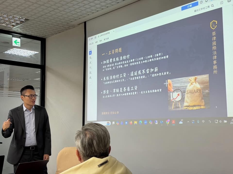 本所張毅超主持合夥律師很榮幸受邀前往法顧客戶,大安工研食品工廠股份有限公司,為主管團隊進行勞資議題的企業內訓。